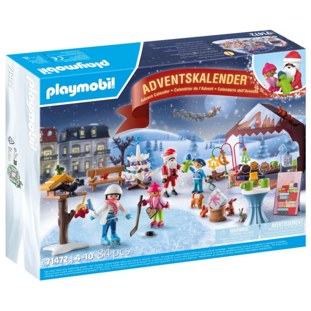 - Kids ages 4+ will love exploring the charming Playmobil Trip to the Christmas Market advent calendar! Each day, a new item helps create a vibrant market scene complete with figurines, an ice rink, and festive booths.