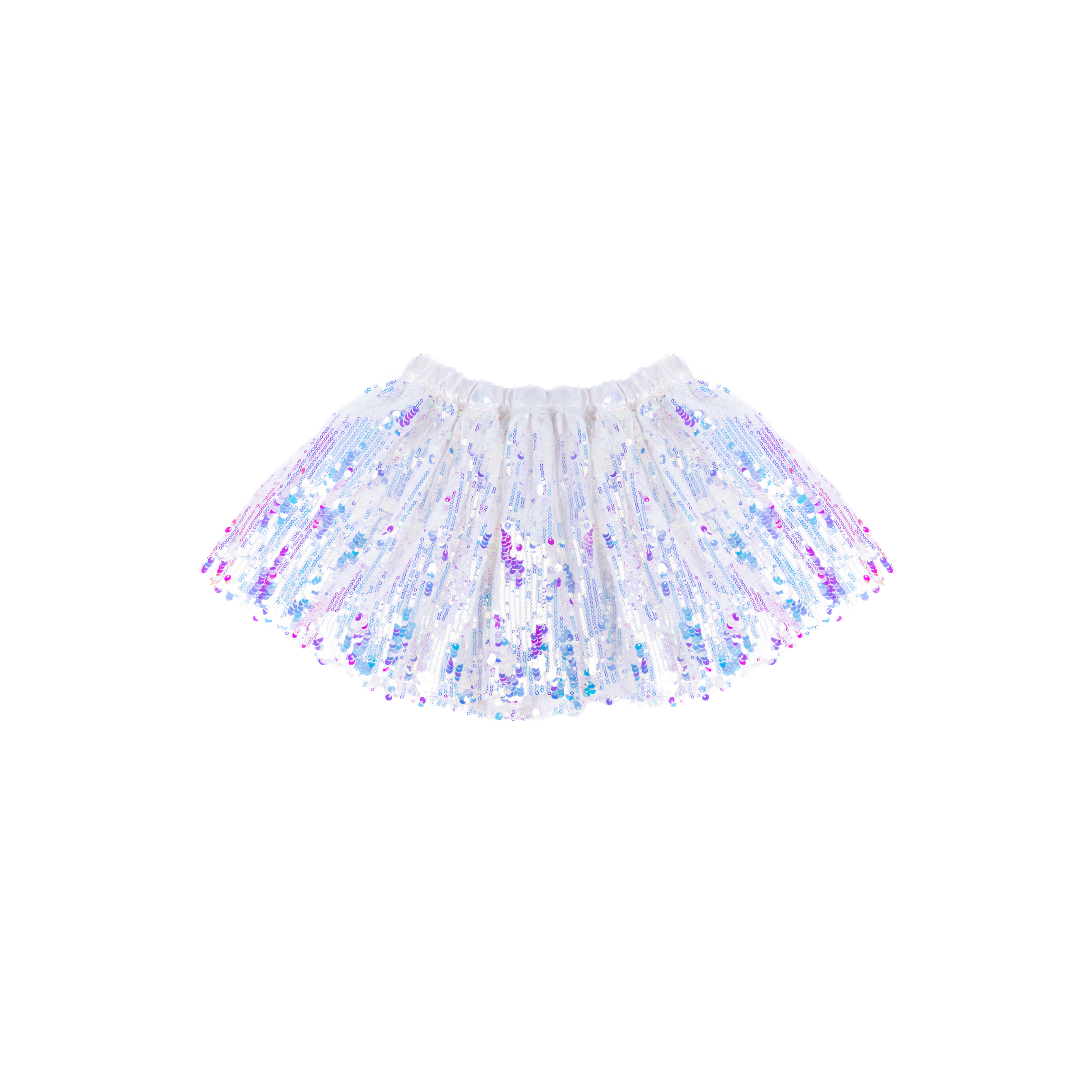Shine like you're center stage in the Sequins Concert Queen Skirt – a dazzling, dance worthy piece inspired by pop royalty herself! This sparkling skirt features a stunning mix of large and small iridescent sequins that appear white at first glance, but reflect soft shades of purple and rainbow shimmer as they catch the light – just like the magic of a concert spotlight!