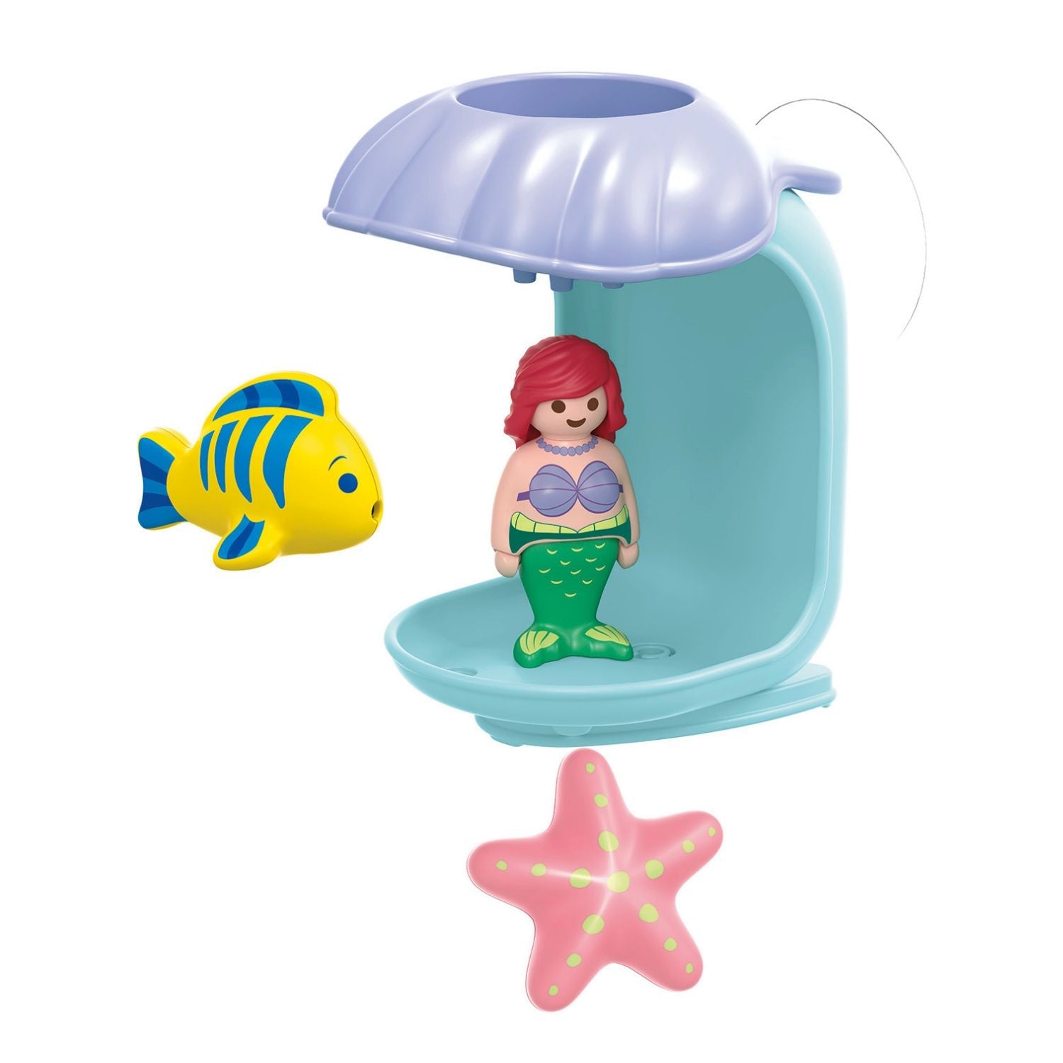 The fun Mermaid Shell Shower, inspired by Disney's Ariel, invites your child to splash and experiment. Does your child love mermaids and the underwater world? Then this set is the perfect choice. The showear easily attached to hard surfaces with a suction cup. Who needs to shower today: the sweet Ariel or perhaps her funny friends instead? Pour water into the shell with the cup, and the shower party can begin. The lively fish, however, does not want to shower and quickly jumps back into the water. Who will catch him with the shell net?
