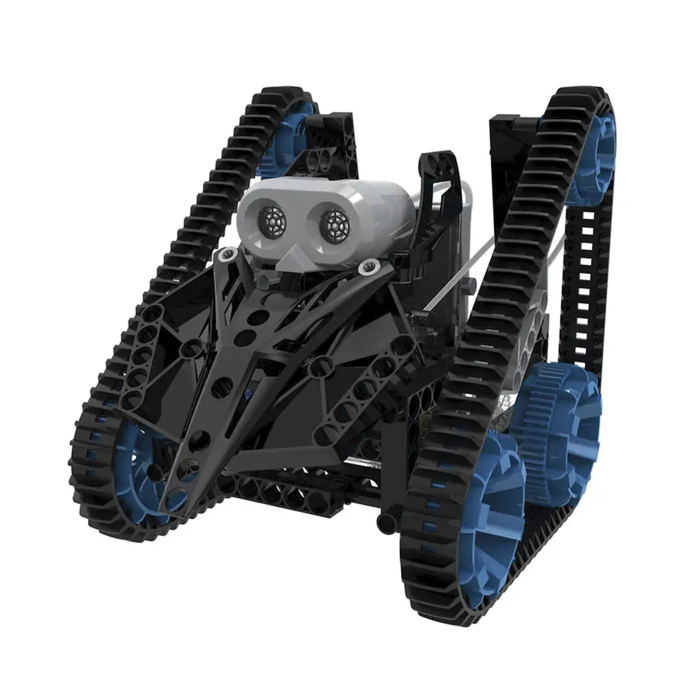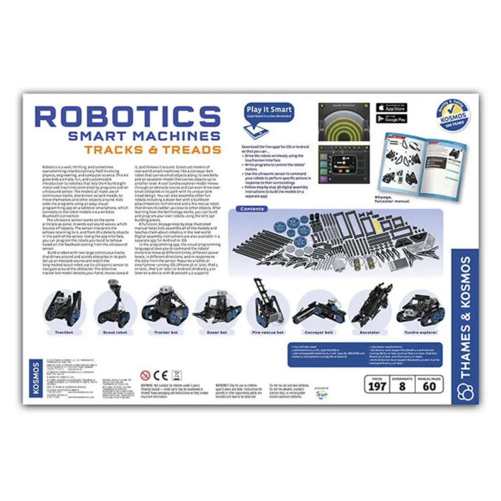 The latest installment in the award-winning Robotics: Smart Machines line, this version focuses on motorized machines that make use of continuous tracks, also known as tank treads, to move themselves and other objects around. Models are controlled by programs and an ultrasound sensor, so in addition to constructing the machines, you’ll also learn how to use the included visual programming app on your tablet or smartphone to code the programs yourself! Build a robot with two large continuous tracks that drives around and avoids obstacles in its path. The attentive tracker bot model detects your hand, moves toward it, and follows it around. Construct models of real-world smart machines, like a conveyor belt robot that carries small objects and an escalator model that carries objects up to another level. You can also assemble other fun robots including a dozer bot with a bulldozer attachment on its front end and a fire rescue robot that drives its ladder up close to other objects. Once you understand how the technology works, you can build your own robots using the kit’s 197 building pieces and create your own programs in the programming app, which is available on iOS and Android devices (tablet or smartphone required, not included).