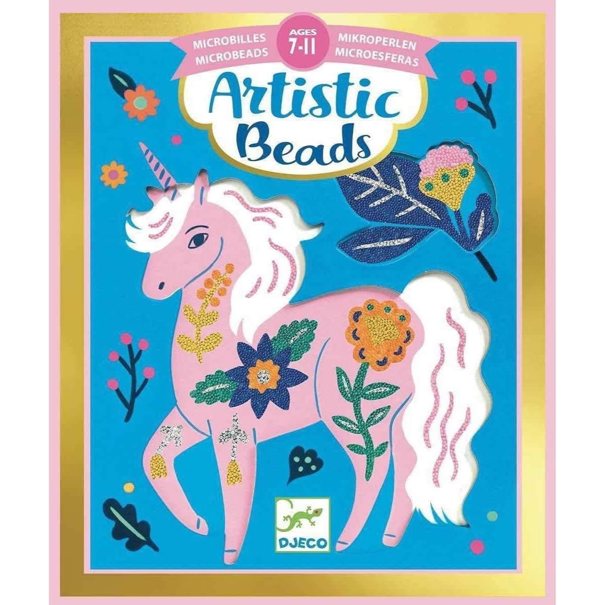 This lovely Artistic Beads Flowers and Fur craft kit by Djeco makes a fabulous present for creative kids. Simply use the provided tool to uncover the sticky areas and then carefully apply the glass beads to create a shimmery, sparkly effect. The Recessed areas on the 4 illustrated cards stop the beads from escaping and make creating these mini masterpieces a delight.