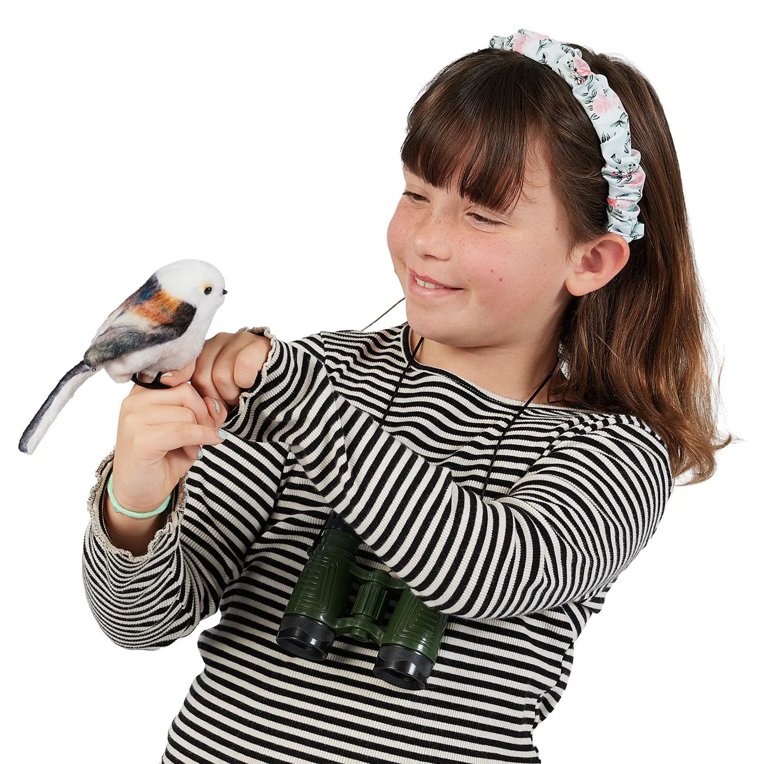 Resembling a snowball in flight, the plump and plush Long-tailed Tit finger puppet, will delight both children and birdwatchers alike. 7" long.